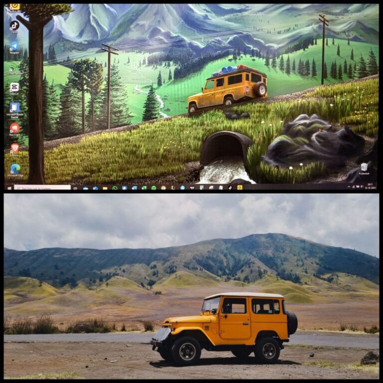 Ik keek naar mijn scherm en besefte dat de jeep die ik in Indonesië had gefotografeerd, bijna identiek was aan de afbeelding die ik een jaar eerder als achtergrond had gekozen.